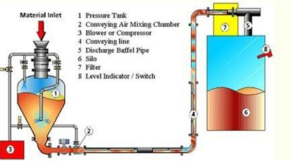 密相泵采用先進的圓頂閥卸料,100%充滿密相泵后,圓頂閥球體穿過物料關閉密封;壓縮空氣通過控制閥門進入密相泵,物料按照特定的系統(tǒng)要求使物料以低速的速度進入輸送管道。輸送需要很少的壓縮空氣,實現(xiàn)高的料氣比,保證較低的能耗和非常小的系統(tǒng)磨損。