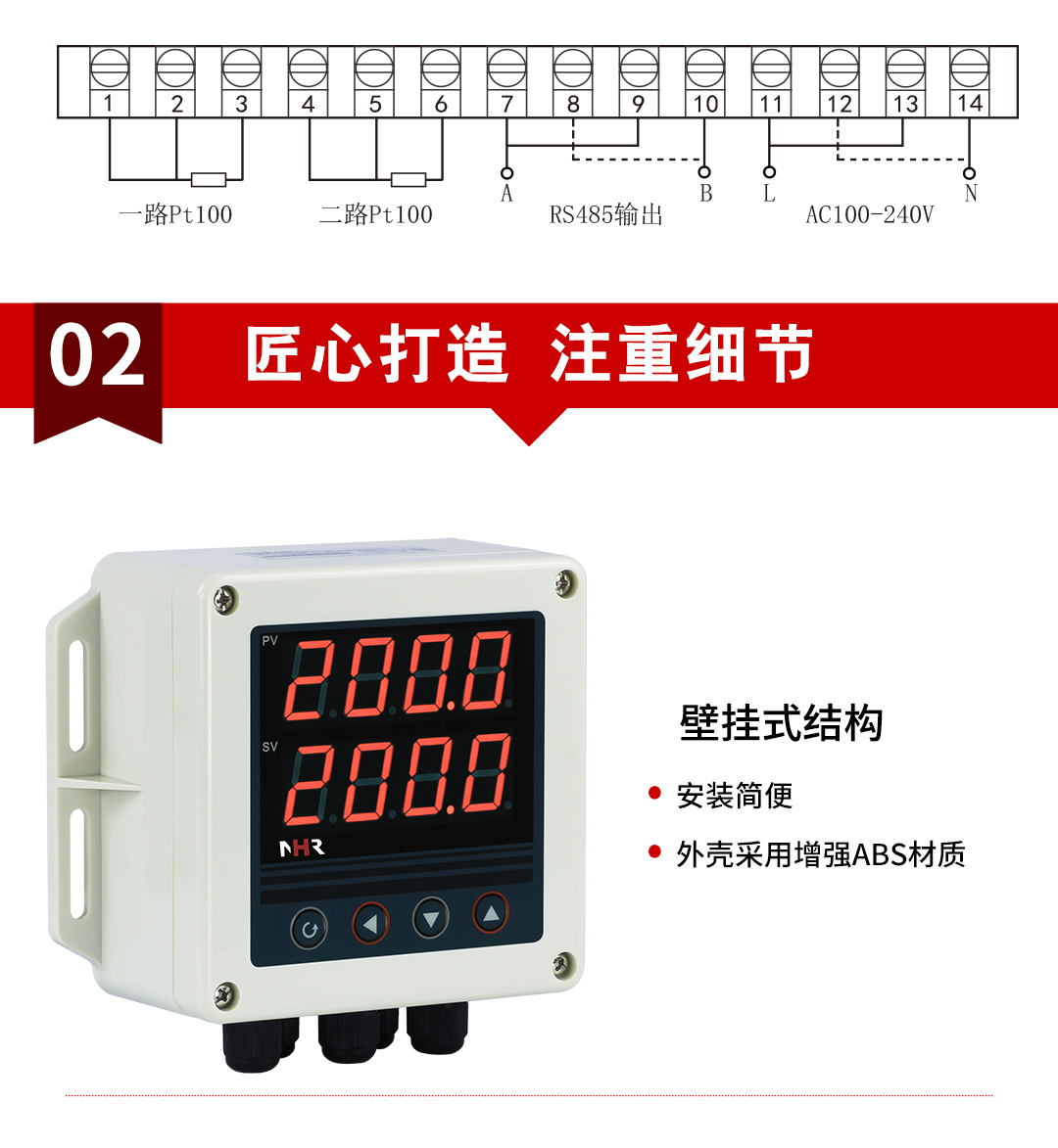 虹潤公司是專業(yè)生產(chǎn)多路溫度巡檢儀的國家專精特新“小巨人”企業(yè),生產(chǎn)的溫度遠傳監(jiān)測儀,具有兩路PT100信號輸入,壁掛式結構,IP65防護等級,高抗干擾,帶RS485通訊輸出等特點。產(chǎn)品獲得巡回檢測顯示方法及裝置、儀表殼體等2項國家發(fā)明專利,主持起草工業(yè)過程控制系統(tǒng)用模擬輸入兩位或多位輸出儀表、物聯(lián)網(wǎng)智能溫度儀表通用技術條件等2項國家標準以及通信系統(tǒng)多通道數(shù)據(jù)采集控制終端規(guī)范軍用標準,參與國際5G標準制定,取得雙路回路溫度遠傳監(jiān)測儀等2項相關軟件著作權。產(chǎn)品廣泛應用于電力、石化、冶金、制藥、水處理、機械配套等各種工業(yè)現(xiàn)場。