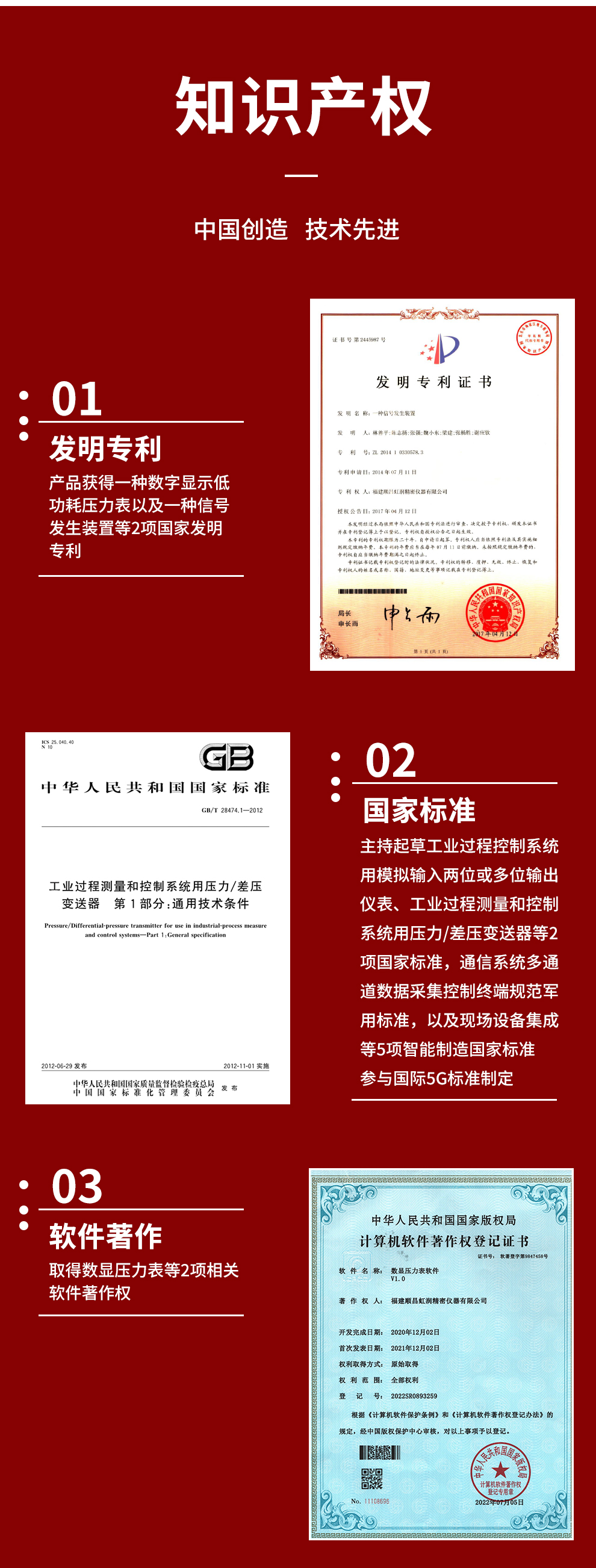 虹潤(rùn)公司是專業(yè)生產(chǎn)數(shù)顯壓力表的國(guó)家專精特新“小巨人”企業(yè)。生產(chǎn)的智能數(shù)字壓力表,具有氣體液體通用,測(cè)量精度高,自動(dòng)溫度補(bǔ)償,響應(yīng)速度快,電池供電低功耗漂移小等特點(diǎn)。產(chǎn)品獲得一種數(shù)字顯示低功耗壓力表以及一種信號(hào)發(fā)生裝置等2項(xiàng)國(guó)家發(fā)明專利,主持起草工業(yè)過程控制系統(tǒng)用模擬輸入兩位或多位輸出儀表、工業(yè)過程測(cè)量和控制系統(tǒng)用壓力/差壓變送器等2項(xiàng)國(guó)家標(biāo)準(zhǔn),通信系統(tǒng)多通道數(shù)據(jù)采集控制終端規(guī)范軍用標(biāo)準(zhǔn),以及現(xiàn)場(chǎng)設(shè)備集成等5項(xiàng)智能制造國(guó)家標(biāo)準(zhǔn),參與國(guó)際5G標(biāo)準(zhǔn)制定,取得數(shù)顯壓力表等2項(xiàng)相關(guān)軟件著作權(quán)。產(chǎn)品廣泛石化、冶金、電力、制藥、食品、航空航天、工業(yè)循環(huán)水系統(tǒng)等諸多領(lǐng)域。