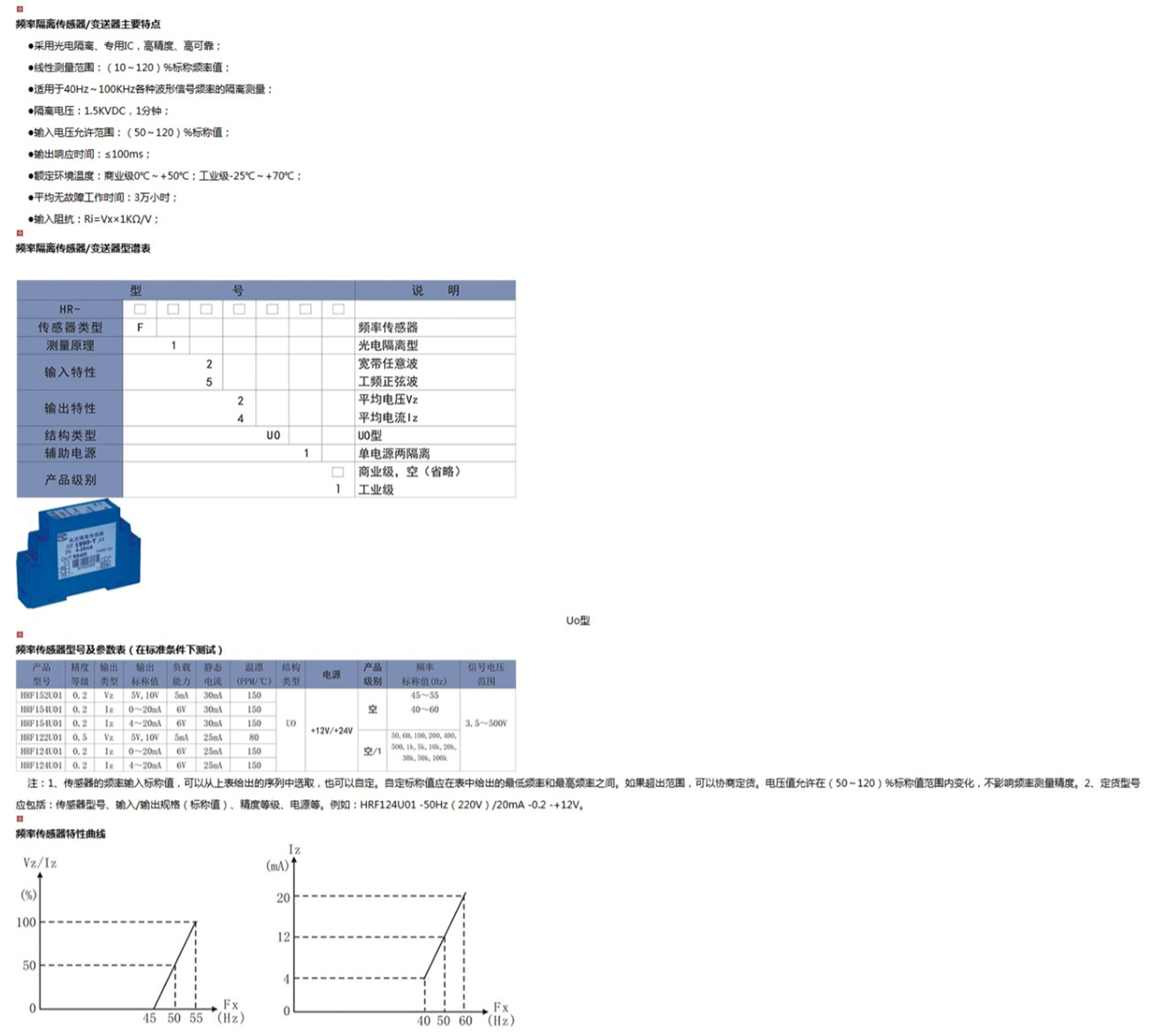 頻率隔離傳感器/變送器是指被測(cè)交流電壓頻率隔離轉(zhuǎn)換成按線(xiàn)性比例輸出的單路標(biāo)準(zhǔn)直流電壓或直流電流。